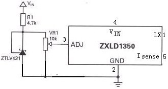 圖1是以ZETEX的ZXLD1350驅(qū)動(dòng)器為例的典型直流電壓調(diào)光示意圖。